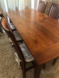 Tavolo in legno massello noce, con 6 sedie. Misure: larghezza 95cm, lunghezza 200cm, altezza 77,5cm Trasporto organizzato dall` acquirente