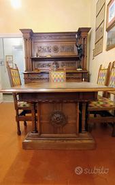 Tavolo in noce biondo inizio 900 + 4 sedie