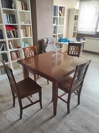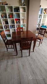 Tavolo in noce, 90*90 cm, allungabile a 180 cm. * 90, con 4 sedie abbinate in perfette condizioni, vendo per 1000 euro, per esigenze familiari.
