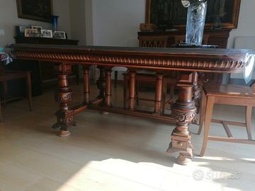 Tavolo lombardo in noce del 800 larghezza 167cm lunghezza 136cm allungabile fino a circa 600cm con assi non originali. Prezzo trattabile