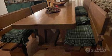 CEDO PER ESIGENZA DI SPAZIO BELLISSIMO TAVOLO MASSICCIO IN NOCE CON 4 PACHE IN NOCE, TUTTO TENUTO INTERNO RUSTICO, PERFETTE CONDIZIONI E DI PREGIO. COMODO PER 14 POSTI A TAVOLA....