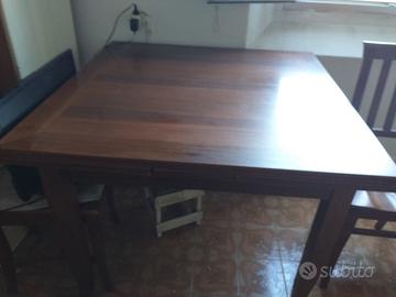 tavolo in noce corredato da 4 sedie uguale legno apribile sistema tedesco semi nuovo