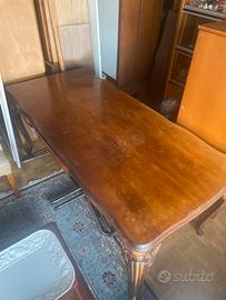 Elegante tavolo in stile Luigi XV, realizzato in Italia negli anni ’50, con struttura in legno massello e impiallacciatura in noce naturale.