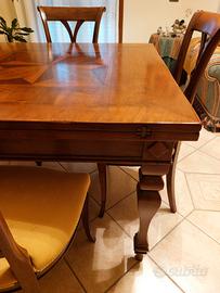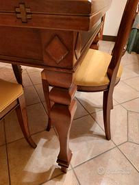 Tavolo quadrato( 100cm x 100 cm), apribile a libro elegantemente lavorato con 4 sedie con seduta imbottita, in ottime condizioni