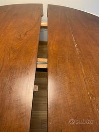 Tavolo in noce diam. 130 cm allungabile con plancia in legno compresa. Da restaurare in alcuni piccoli punti ma perfettamente utilizzabile già così. Altezza da terra 80 cm. Tutto in massello.