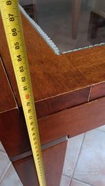 tavolo in noce con piano in cristallo in buone condizioni ritiro a carico dell' acquirente " le misure sono indicate nelle foto"