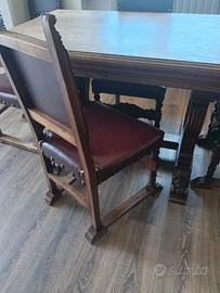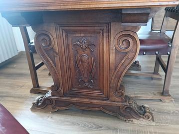 tavolo in noce stile neorinascimentale con 6 sedie