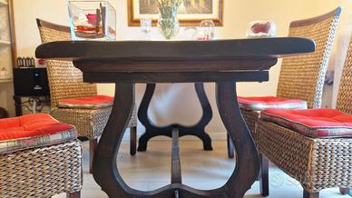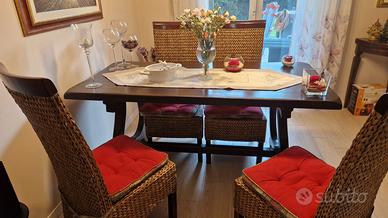 Il tavolo e' comprensivo di 4 sedie in legno e intreccio naturale di fibra di banano