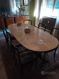 tavolo con piano in onice cm 92x200 con 6 sedie