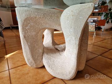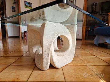 Tavolo da fumo e appoggio in pietra e vetro pesanti.