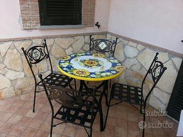 Vendo questo bellissimo tavolo in pietra lavica dell'etna che comunque a richiesta lo realizzo di qualsiasi forma dimensione e decoro,anche come una vostra foto, con possibilità di avere il piede e le sedie in ferro battuto.Spedisco ovunque con garanzia che il prodotto vi arrivi integro,prodotti frutto del miglior artigianato siciliano,fatti interamente a mano come un pittore quando realizza un quadro.Contattatemi per qualsiasi altro chiarimento.PAGAMENTO QUASI PER INTERO ALLA CONSEGNA.Possibilità di trasporto compreso di montaggio del tavolo ,in terrazza sotto il gazebo o ovunque volete.Unica azienda in sicilia che produce tavoli e cucine dall'inizio alla fine,partendo dal blocco intero di pietra lavica fino al tavolo ci siamo solo noi,senza intermediari.Nessuno può darvi il mio stesso servizio.Prezzo riferito a tavolo per 4 persone.