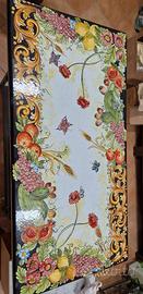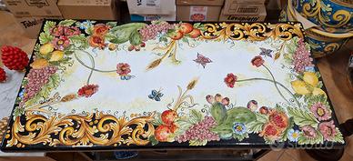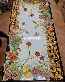Vendesi tavolo di pietra lavica decorato a mano.