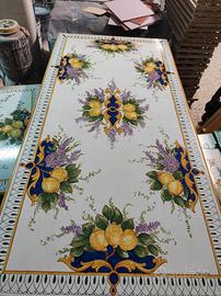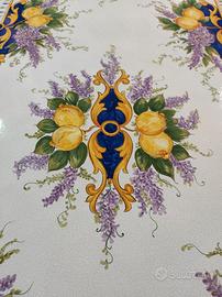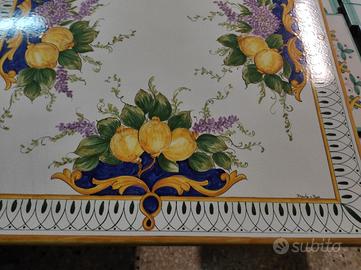 ANNUNCIO PUBBLICATO A NAPOLI MA VALIDO PER TUTTA ITALIA. LA SPEDIZIONE VERRÀ EFFETTUATA PRESSO IL DOMICILIO DEL CLIENTE DA UN NOSTRO CORRIERE DI FIDUCIA. Tavolo misura cm 200x100 cm. realizzato interamente a mano da artigiani napoletani specializzati nella lavorazione e nella decorazione della pietra lavica. La pietra lavica garantisce resistenza assoluta a calore, intemperie e usura, mentre il decoro dipinto a mano rende questo pezzo unico e irripetibile. Articolo esclusivo con le decorazioni che potete ammirare in foto. Prezzo comprensivo di base in ferro battuto zincata e 6 sedie in ferro battuto con inserto sullo schienale. Spedizione al domicilio compresa nel prezzo.