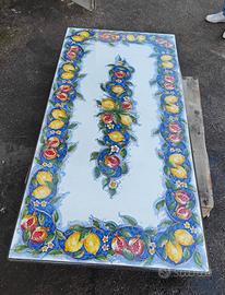 ANNUNCIO PUBBLICATO A NAPOLI MA VALIDO PER TUTTA ITALIA. LA SPEDIZIONE VERRÀ EFFETTUATA PRESSO IL DOMICILIO DEL CLIENTE DA UN NOSTRO CORRIERE DI FIDUCIA. Tavolo misura cm 200x100 cm. realizzato interamente a mano da artigiani napoletani specializzati nella lavorazione e nella decorazione della pietra lavica. La pietra lavica garantisce resistenza assoluta a calore, intemperie e usura, mentre il decoro dipinto a mano rende questo pezzo unico e irripetibile. Articolo esclusivo con le decorazioni che potete ammirare in foto. Prezzo comprensivo di base in ferro battuto zincata e 6 sedie in ferro battuto con inserto sullo schienale. Spedizione al domicilio compresa nel prezzo.
