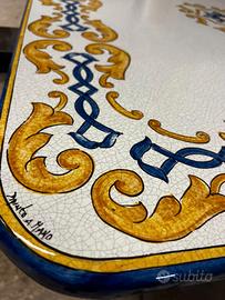 ANNUNCIO PUBBLICATO A NAPOLI MA VALIDO PER TUTTA ITALIA. LA SPEDIZIONE VERRÀ EFFETTUATA PRESSO IL DOMICILIO DEL CLIENTE DA UN NOSTRO CORRIERE DI FIDUCIA. PER INFO CHIAMA AL CELL. 3756105920 Splendido tavolo rettangolare in vera pietra lavica dell'Etna misura 200x100 cm, interamente decorato a mano da maestri ceramisti della tradizione napoletana. Ideale per dare un tocco di eleganza mediterranea a giardini, terrazzi o zone living interne. Caratteristiche principali: - Materiale: Lastra in pietra lavica (indistruttibile e resistente agli sbalzi termici, gelo e salsedine). - Stato: [Ottimo stato / Nuovo]. - Resistenza: Superficie smaltata antigraffio e antimacchia, facile da pulire e pensata per durare decenni senza sbiadire al sole. Disponibile anche nelle misure: 100x60 con base in ferro battuto cm prezzo € 1.050 (4 posti) 160x80 con base in ferro battuto cm prezzo € 1.990 (4 posti) 180x90 con base in ferro battuto cm prezzo € 2.280 (4/6 posti) 200x100 con base in ferro battuto cm prezzo € 2,700 (6 posti comodi/8 posti) 220x100 con base in ferro battuto cm prezzo € 2.900 (8 posti)
