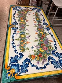 ANNUNCIO PUBBLICATO A NAPOLI MA VALIDO PER TUTTA ITALIA. LA SPEDIZIONE VERRÀ EFFETTUATA PRESSO IL DOMICILIO DEL CLIENTE DA UN NOSTRO CORRIERE DI FIDUCIA. PER INFO CHIAMA AL CELL. 3756105920 Splendido tavolo rettangolare in vera pietra lavica dell'Etna misura 200x100 cm, interamente decorato a mano da maestri ceramisti della tradizione napoletana. Ideale per dare un tocco di eleganza mediterranea a giardini, terrazzi o zone living interne. Caratteristiche principali: - Materiale: Lastra in pietra lavica (indistruttibile e resistente agli sbalzi termici, gelo e salsedine). - Stato: [Ottimo stato / Nuovo]. - Resistenza: Superficie smaltata antigraffio e antimacchia, facile da pulire e pensata per durare decenni senza sbiadire al sole. Disponibile anche nelle misure: 100x60 con base in ferro battuto cm prezzo € 1.050 (4 posti) 160x80 con base in ferro battuto cm prezzo € 1.990 (4 posti) 180x90 con base in ferro battuto cm prezzo € 2.280 (4/6 posti) 200x100 con base in ferro battuto cm prezzo € 2,700 (6 posti comodi/8 posti) 220x100 con base in ferro battuto cm prezzo € 2.900 (8 posti)