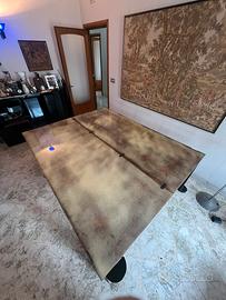 Vendo tavolo in radica degli anni ‘70 con finitura resinata da ripristinare . Il tavolo puo essere utilizzato da chiuso e da aperto con posibilita di circa 16/18 posti a sedere . Prezzo trattabile e trasporto a carico dell’acquirente .
