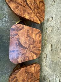 Tavolo in radica di noce e battuta in ottone Disponibili 6 tavoli totale 300,00€ Un tavolo a 50,00€