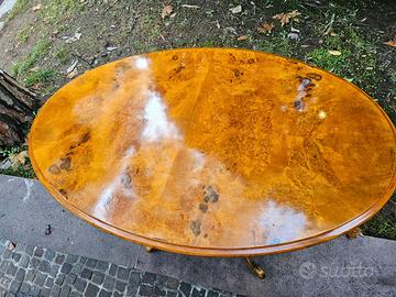 Tavolo stile antico in radica di noce ovale misure 66x102x70 circa