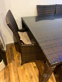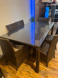 Per immediato realizzo vendo tavolo in rattan piu 4 sedie e due poltroncine.