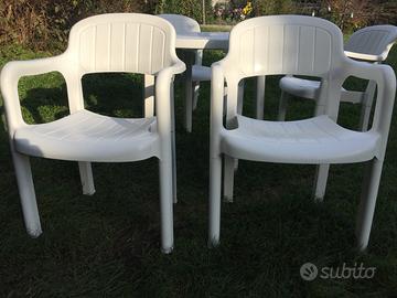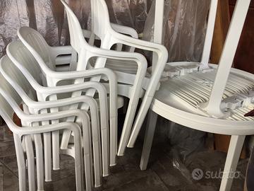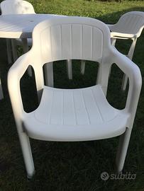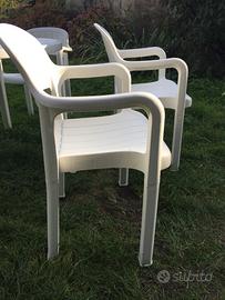 2 tavoli in resina bianca Allibert 100 al pezzo. 15 poltroncine Allibert Madrigal in resina bianca 40 al pezzo. Tutti usati ma in condizioni come da foto.
