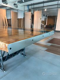 Vendo splendido tavolo artigianale in resina e radica di pioppo, realizzato con grande cura e attenzione ai dettagli. Il tavolo ha una presenza importante ed è perfetto sia come grande tavolo da pranzo sia come tavolo da riunione / sala conferenze. Misure: •Lunghezza: 360 cm •Larghezza: 125 cm Le gambe sono fatte a mano in ferro, robuste e dal design essenziale, ideali per valorizzare il carattere unico della struttura. Ogni pezzo di legno ha venature e forme irripetibili, quindi si tratta di un pezzo unico, adatto a chi cerca qualcosa di particolare e di forte impatto estetico. Caratteristiche: •Piano in radica di pioppo e resina •Gambe artigianali in ferro •Tavolo unico •Ideale per ambienti moderni, rustici o industriali