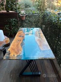 tavolo in resina epossidica e legno di ulivo