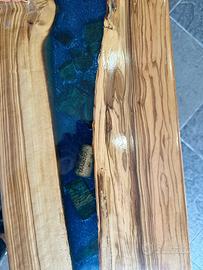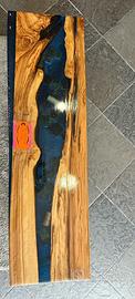 Vendo splendido tavolo artigianale realizzato a mano in legno massello con inserto centrale in resina epossidica blu effetto “fiume”.