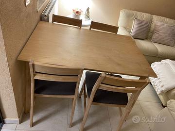 TAVOLO IN ROVERE CON 4 SEDIE 80X120 altezza 76cm