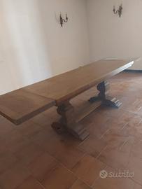 tavolo in rovere fatto a mano da un artigiano molto massiccio lunghezza mt 2 con allungamento a mt 2,85 larghezza cm 80