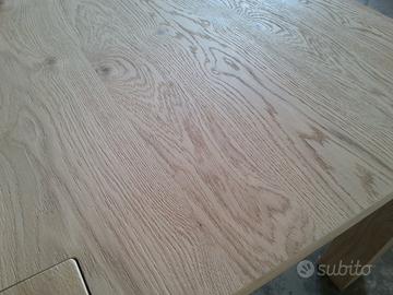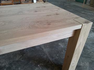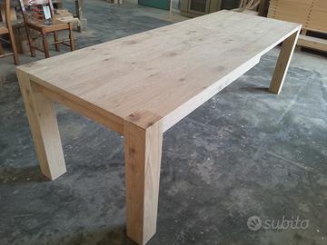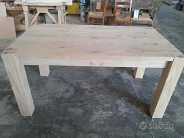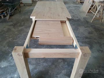 Tavolo in rovere nodato e spaccato, allungabile, interamente smontabile. È costruito in italia da una ditta artigiana presente da 3 generazioni nel settore (realizziamo qualunque tipo di mobile,anche su misura) Misure 160x90,allungabile fino a 260x90 (apertura a scorrimento tramite corsie molto resistenti in legno, con 2 allunghe contenute in uno scompartimento sotto al tavolo,a scomparsa); Con un supplemento di prezzo si può avere la verniciatura (visto che il tavolo non è verniciato). È possibile venire direttamente in fabbrica per visionare il tavolo e si può avere di misure o forme diverse, visto che lo produciamo direttamente noi