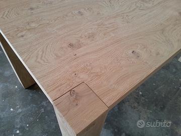 Tavolo in rovere nodato e spaccato, allungabile, interamente smontabile.