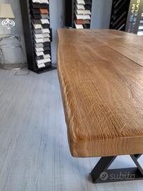 Svendita per rinnovo esposizione! Tavolo in rovere massello, spazzolato, finitura naturale con bordo scortecciato, gambe in alluminio finitura antracite misura 76x195