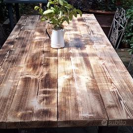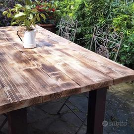 Tavolo in stile in stile industriale, telaio in acciao verniciato e piano in tavoloni da ponteggio sp.5 cm
