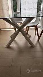Tavolo in vetro Misure: 160 x 90 H 75o Gambe in metalle bianche