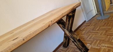 Vendo a 300 euro tavolo in legno massiccio molto pesante, stile rustico – antico - vintage. Dimensioni: 175cm larghezza x 62,5/61cm proffondita x 75cm altezza, spessore piano tavolo 5cm. Gambe in legno particolari con forma X. Unico pezzo, fatto fare artigianalmente. Utilizzabili per grandi stanze da cucina, taverne, cantine.