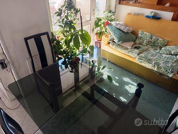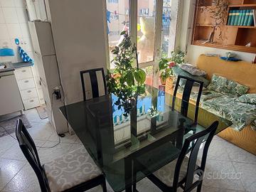 Tavolo in vetro 120 x 120 Piedi in ferro nero e piano in vetro. qualche graffio come in foto. regalo anche le 4 sedie. si trova: Salita Arenella Napoli Sesto piano