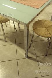 Per rinnovo campionature expo vendesi tavolo in vetro cm. 120x80 con allunga in vetro e struttura in acciaio cromato con 6 sedie con fondino in paglia e struttura in acciaio cromato acquistabili a parte ad euro 50 cadauna