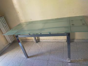 Tavolo allungabile con piano in vetro temperato e struttura in alluminio