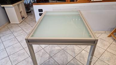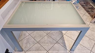 Tavolo usato ma in buone condiIoni telaio grigio in acciaio appoggio in vetro. dimensioni chiuso 120x90x74. Allungato 240x90x74. Per chi fosse interessato vi chiediamo la cortesia di chiamare il numero dopo le 16:30 .