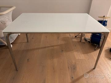 Vendo tavolo in vetro dimensioni lxwxh 90x140x75 cm dotato di allungo a scomparsa lungo 55 cm.