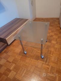 tavolo in vetro misura 70/55/50cm con ruote consegna a mano