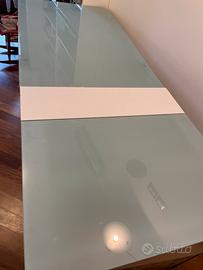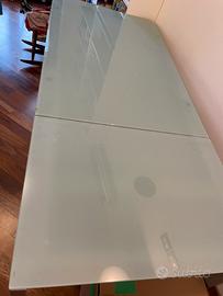 In vetro temperato satinato opaco allungabile molto facilmente larghezza 130 cm lunghezza fino a 2,05 m.piccolo difetto sul vetro non determinante. Ritiro a cura dell acquirente