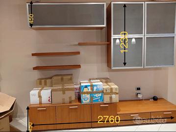 Tavolo in cristallo Calligaris Misure 90x180 Struttura in legno ciliegio Compresivo di 6 sedie con schienale intrecciato e seduta in tessuto bianco sfoderabile. + parete attrezzata Zona provincia di Napoli No trasporto
