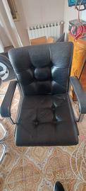 Tavolo con superficie in vetro e quattro sedie con struttura cromata in buone condizioni generali.