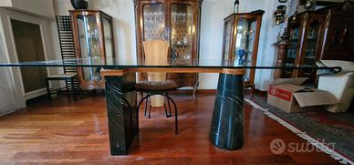 Tavolo in vetro con gambe in marmo e 6 sedie