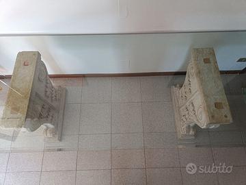 Tavolo in vetro con piedi in granito