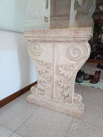 Bellissimo tavolo antico con pianale in vetro e piedi in granito scolpito. 4 sedie comprese nel prezzo. Prezzo trattabile. Misure: lunghezza 220 cm, larghezza 90 cm, altezza 77cm