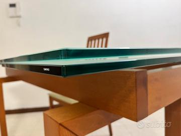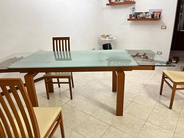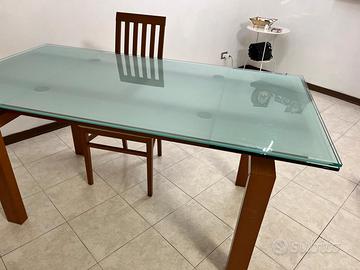 Tavolo in vetro temperato marca CALLIGARIS allingabile comprese 4 sedie tutto in legno di ciliegio.