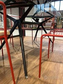 Tavolo SCAB realizzato con struttura in alluminio e piano in vetro. Nr.4 sedie senza braccioli + Nr.2 sedute con braccioli.